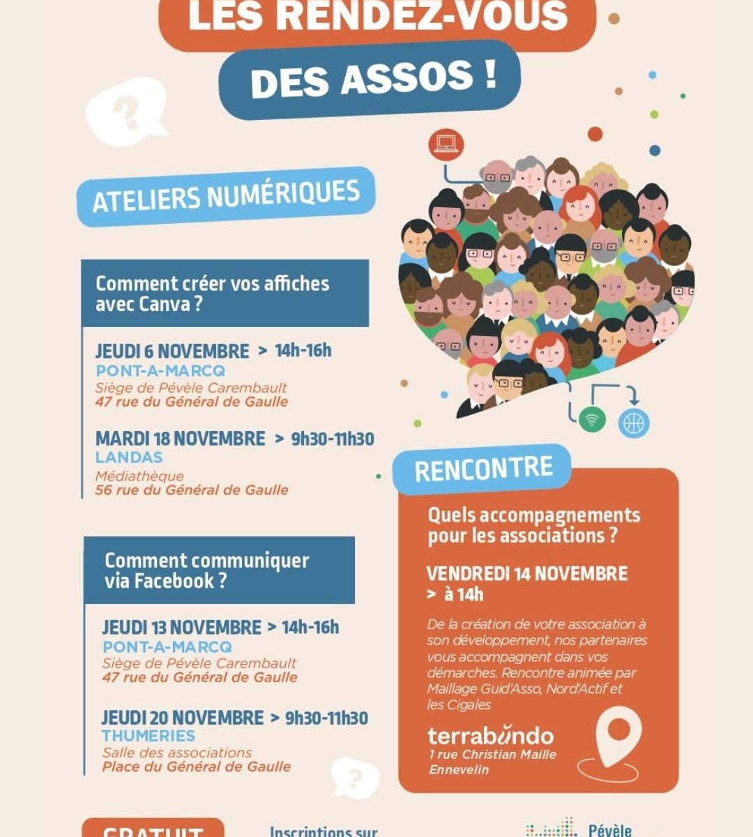 👉 1 rencontre est organisée le vendredi 14 novembre à 14h à Terrabùndo (Ennevelin) sur la thématique : “Quel accompagnement pour les associations❓”.