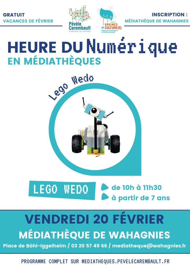 Le 20 février 2026, la médiathèque de Wahagnies vous reçoit en son sein – place Böhl-Iggelheim, pour un événement “Heure du Numérique en médiathèques”, de 10h à 11h30 (à partir de 7 ans).