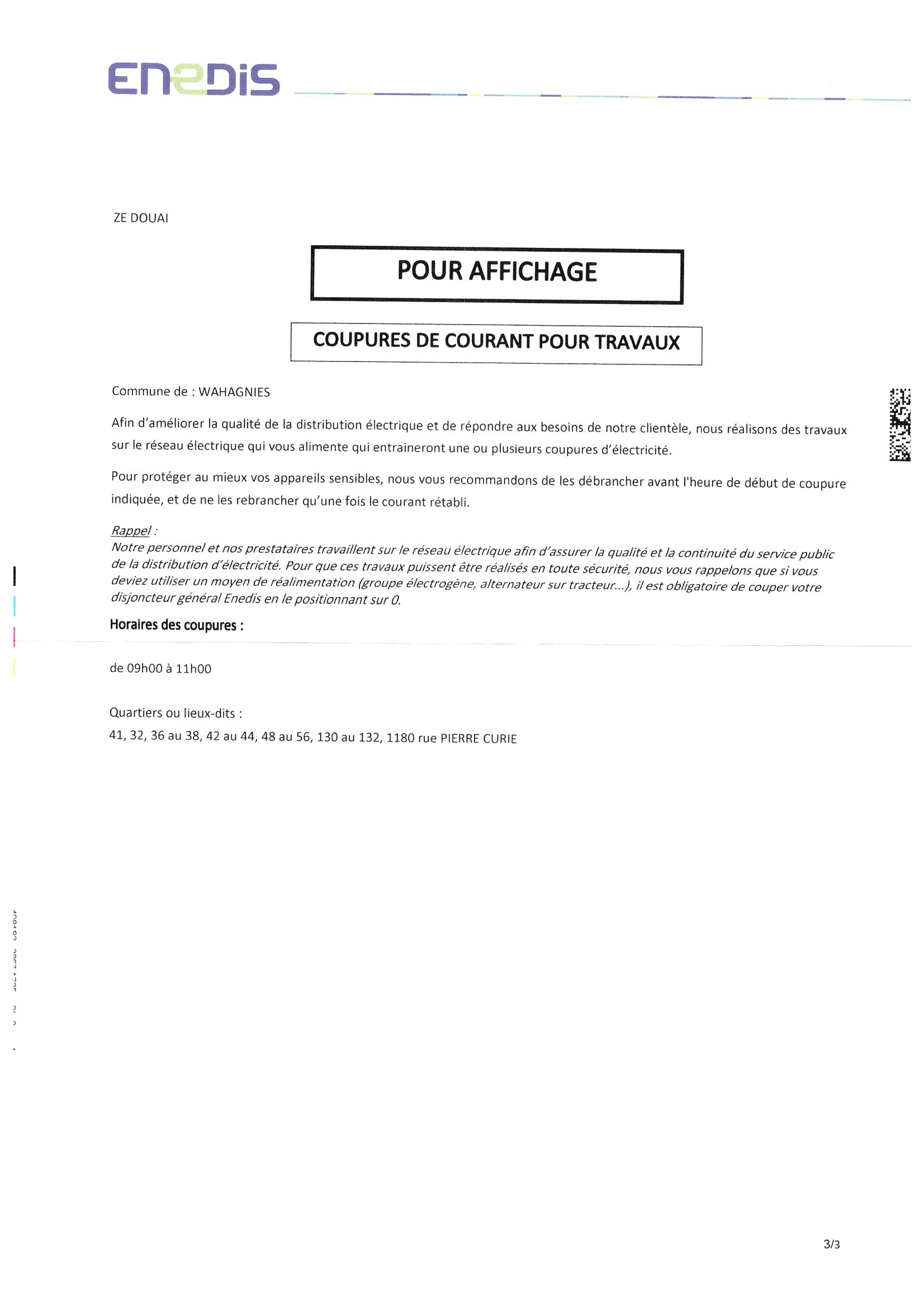 Coupure d’électricité pour travaux – 16/04/2026 entre 9h et 11h