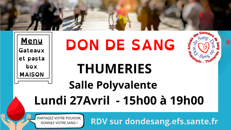 Don de sang – Thumeries – 27 avril 2026