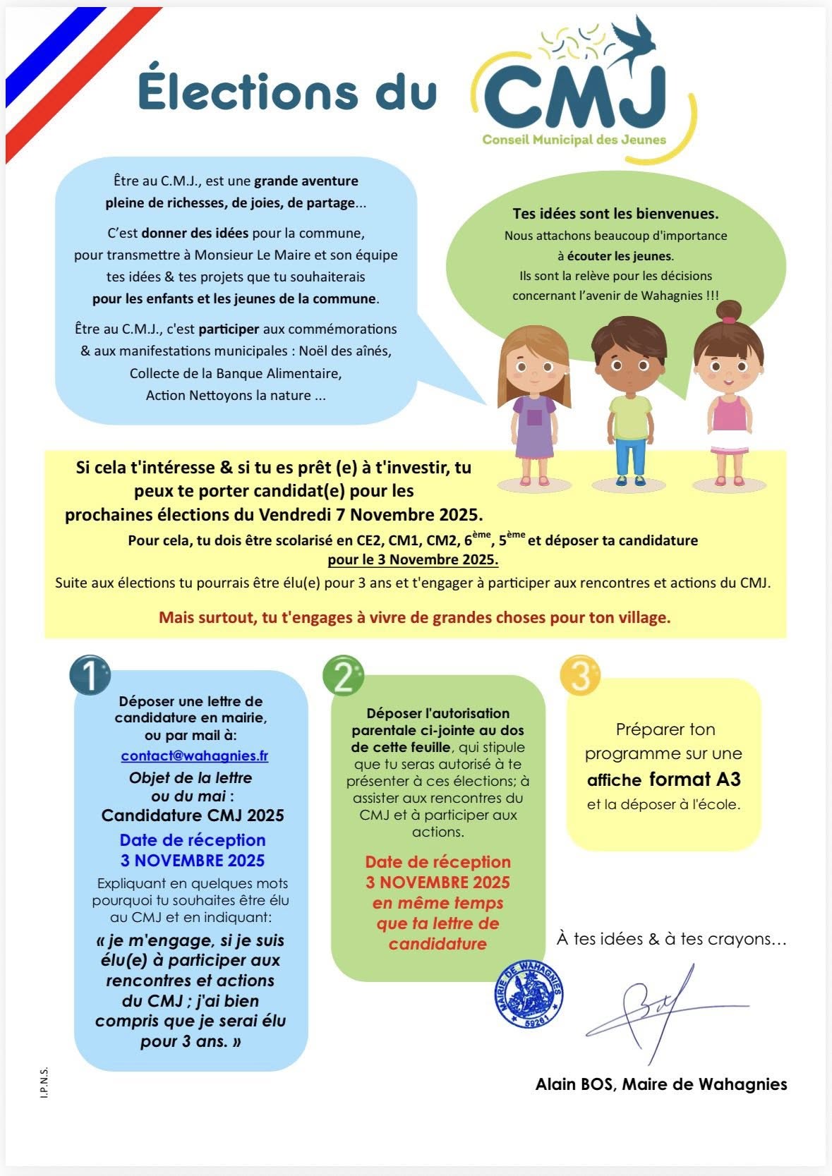 “Élections du C.M.J. Candidatures pour le 3 Novembre 2025”