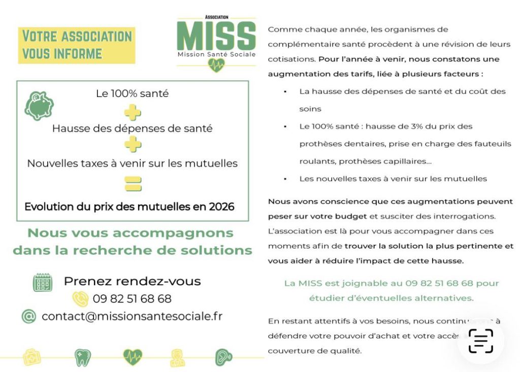 Screenshot ” Votre association MISS – Mission Santé Sociale vous informe Comme chaque année, les…